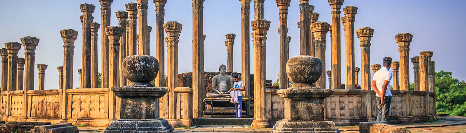 Medirigiriya Vatadage is an elegant circular relic house surrounded by intricately carved stone columns, set atop a small hill with panoramic countryside views.